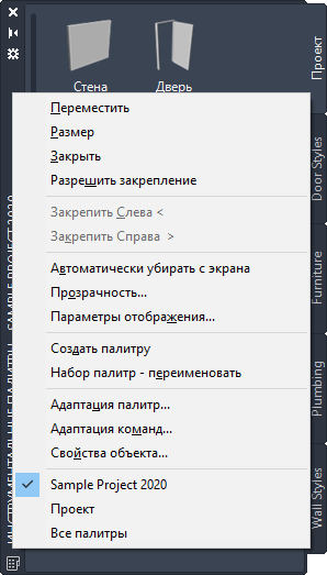 Чтобы открыть набор инструментальных палитр, выберите вкладку "Главная"панель "Создание"раскрывающийся списке "Инструменты""Инструменты проектирования".