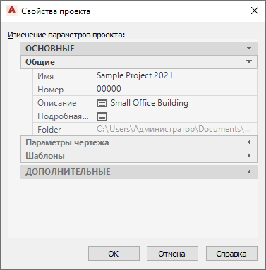 | Шаблон листа | Параметр определяет местоположение файла шаблона по умолчанию для создания новых листов. Для изменения этого значения нажмите Если подшивка проекта заблокирована, данное свойство предназначено только для чтения. |