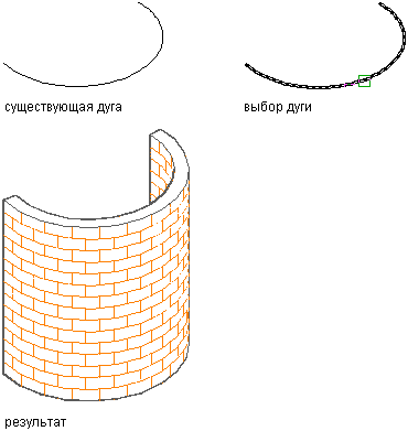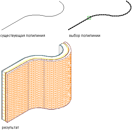 определить базовую линию стены на основе линии или дуги, изображенной на чертеже,