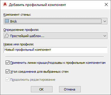 Добавление профильного компонента к стене