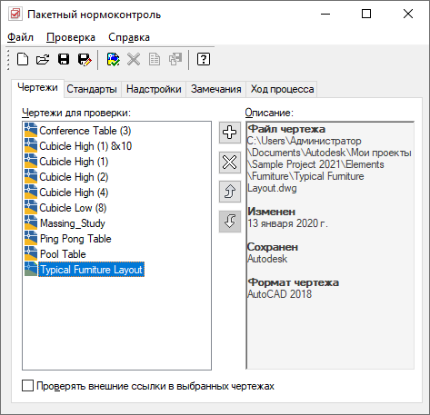 Утилита пакетного нормоконтроля AutoCAD запускается независимо от инструментарий AutoCAD Architecture 2026.