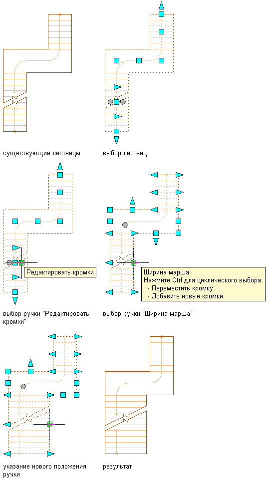 Эта процедура используется для изменения ширины лестничного марша. Ширину лестницы можно также изменить на палитре свойств.