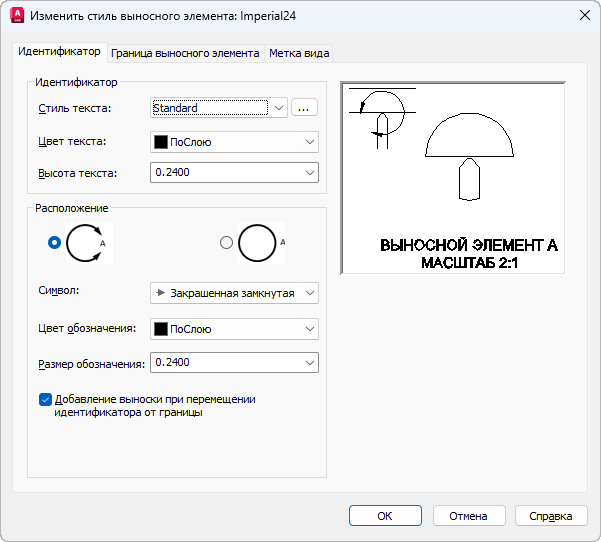 При выборе этого параметра граница выносного элемента будет соединена с идентификатором выноской при перемещении идентификатора с его исходного положения.