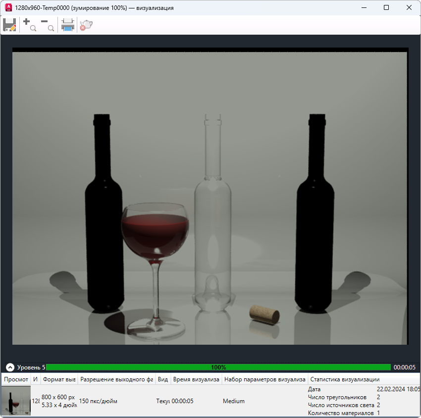 Визуализированное изображение из любого чертежа всегда появляется в соответствующем окне визуализации.