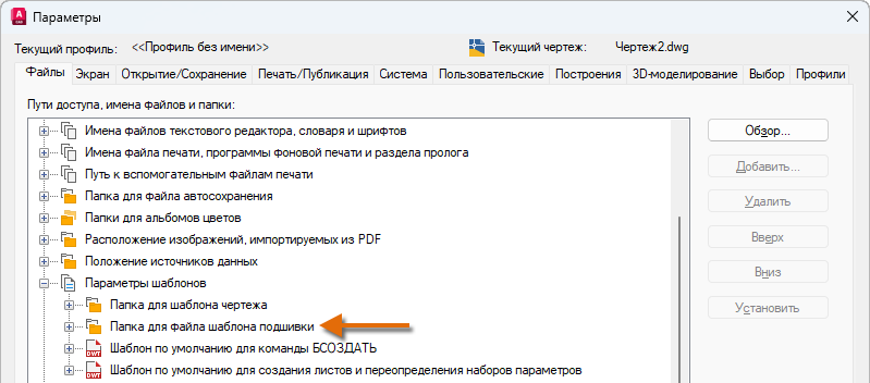 Файлы шаблона чертежа (DWT) используются для создания новых чертежей. Чертежи, созданные с помощью файла DWT, содержат все стили и объекты чертежа, определенные в файле DWT. Пользовательские файлы DWT из предыдущей версии переносятся во вложенную папку с именем версии, в которую они были перенесены; соглашение об именовании вложенной папки: "имя продукта шаблоны". Вложенная папка "имя продукта шаблоны" создается в папке, определенной в параметре "Местоположение файла шаблона чертежа".