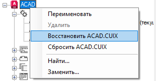 Прим.: Можно выполнить возврат к исходному состоянию только для файлов адаптации CUIx, находящихся в папке UserDataCache, вложенной в папку установки программы.