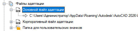 - В Проводнике перейдите к файлу <диск>:\Users\<имя пользователя>\AppData\Roaming\Autodesk\<название программы>\<номер версии>\<язык>\support\<имя файла адаптации>.cuix.