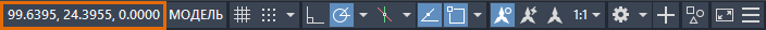 В строке состояния также возможно отображение координат курсора. По умолчанию отображение координат отключено.