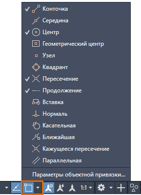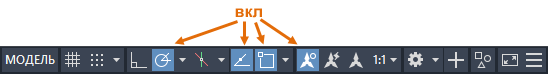 | Объектная привязка | Включение и отключение объектной привязки. |