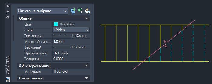 Разрыв линии и изменение ее слоя