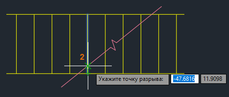 По умолчанию точка указания объекта становится первой точкой разрыва.