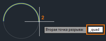 Снова используйте объектную привязку КВАДрант и укажите вторую точку разрыва.