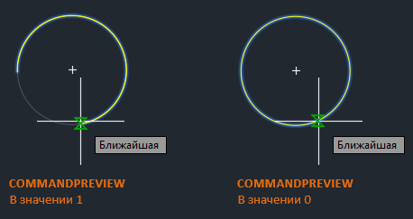 Убедитесь, что для системной переменной COMMANDPREVIEW задано значение 1. Если просмотр команды включен, при использовании команды можно просмотреть ее результат.