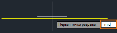 Используйте объектную привязку СЕРедина, чтобы указать среднюю точку линии в качестве первой точки разрыва.