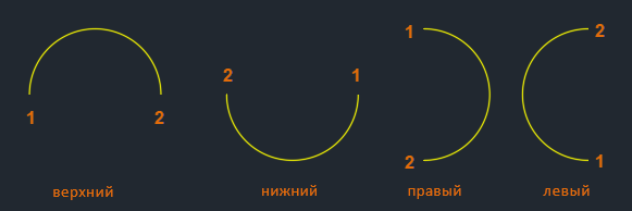 Порядок, в котором вы задаете точки на окружности, определяет направление разрыва: по часовой стрелке или против часовой стрелки.