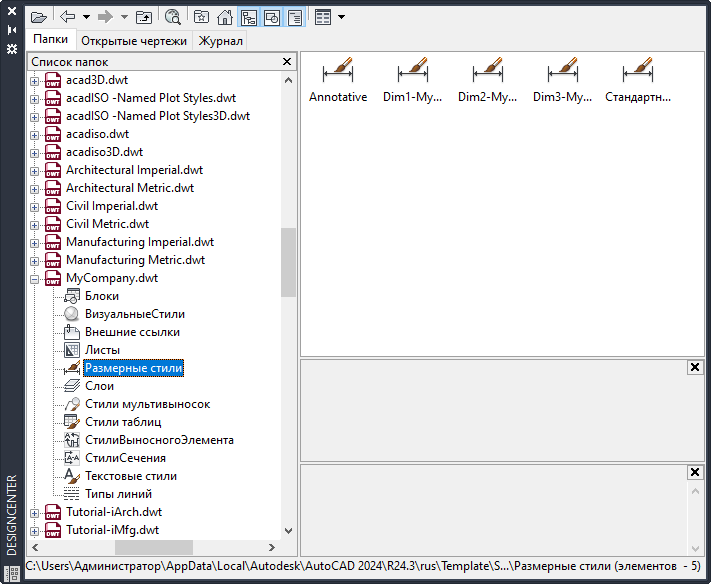 Отобразятся размерные стили, определенные в чертеже или шаблоне.