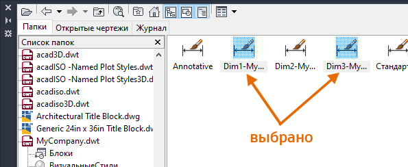 5. Выберите стили, которые требуется импортировать в текущий чертеж. Используйте клавишу CTRL или SHIFT для выбора нескольких стилей.