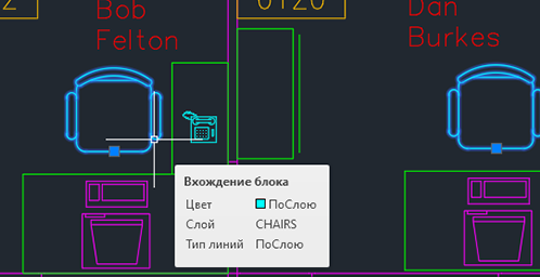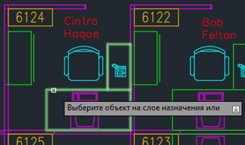 Допустим, нужно перенести эти кресла со слоя CHAIR на слой FURNITURE с помощью параметра «Как у текущего слоя».