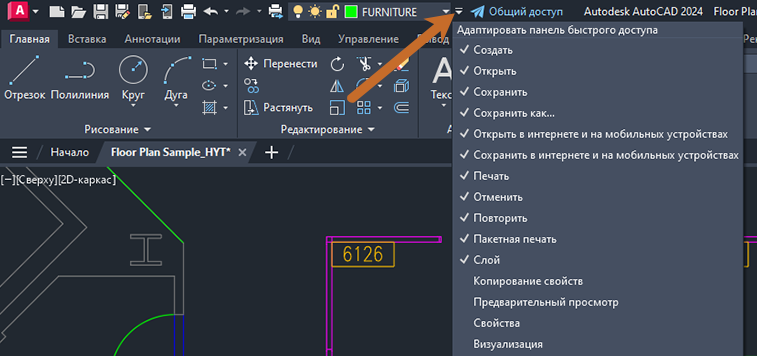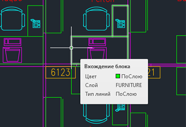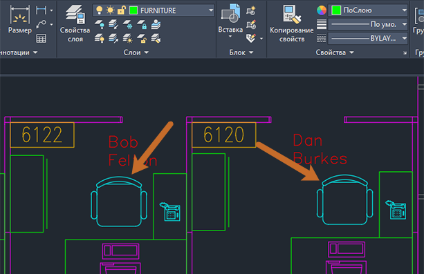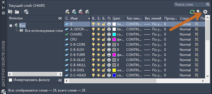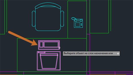 Предположим, нужно сделать текущим слой мебели FURNITURE. Конечно, можно просто открыть список слоев и прокрутить его до нужного пункта. Но давайте лучше воспользуемся параметром «Сделать текущим», чтобы быстро изменить текущий слой.