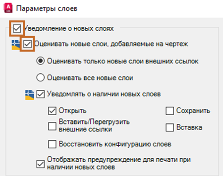 Можно настроить автоматическую отправку уведомлений при добавлении в чертеж новых слоев. Новые слои могут добавляться при вставке внешних ссылок или блоков. Кроме того, при работе с общедоступными чертежами новые слои могут быть добавлены другими участниками.