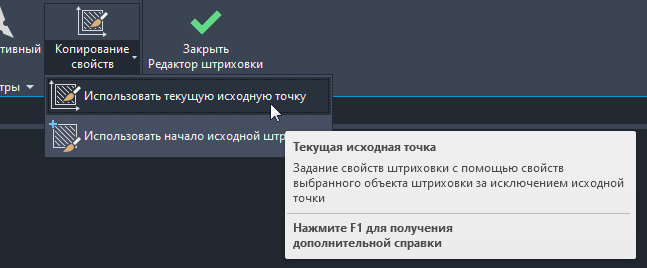 Этот объект будет считаться исходным. Свойства скопируются в редактируемую штриховку.