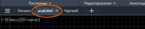 На вкладке чертежа отобразится имя шаблона с расширением DWT. Его можно редактировать.