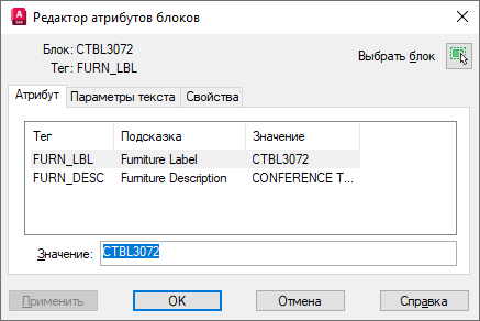 - Выберите геометрию стола, а затем щелкните атрибут FURN_LBL за которым следует атрибут FURN_DESC.