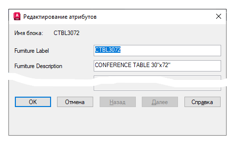 При вставке блока с атрибутами можно принять значение по умолчанию или задать новое значение для каждого атрибута в блоке.