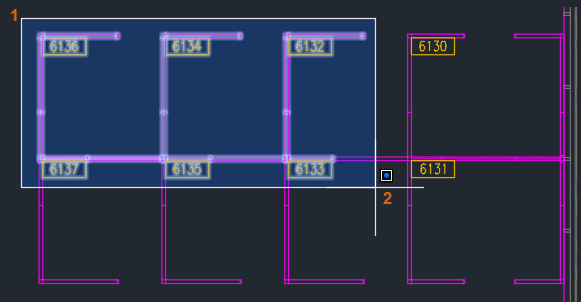 В этом примере выберем все контуры кабинок на чертеже.