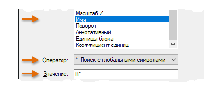 Иногда необходимо подсчитать блоки с помощью общего образца имени. Чаще всего используется подстановочный знак «?» для одного символа и «*» для любого количества символов. Например, можно выполнить поиск всех блоков, начинающихся с буквы B, с помощью B* и всех блоков, у которых вторым знаком является 4, с помощью ?4*.