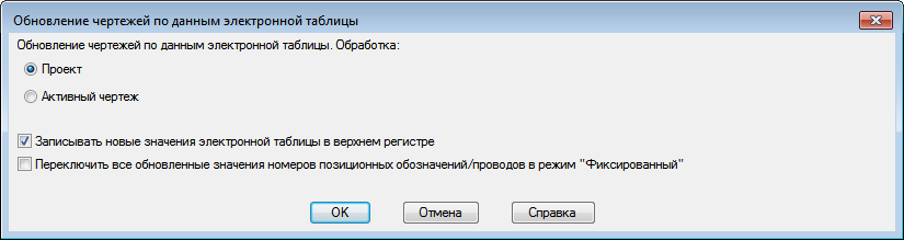 Укажите, что следует импортировать: данные электронной таблицы текущего чертежа или всего проекта.