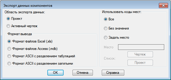 Укажите, где следует выполнять экспорт данных: в текущем чертеже или во всем проекте.