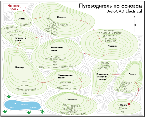 Данное руководство является хорошей отправной точкой для начала работы с Инструментарий AutoCAD Electrical. Как видно на рисунке, элементы группируются в соответствии с типами задач. Кроме того, эти группы располагаются последовательно в соответствии с типовым рабочим процессом.