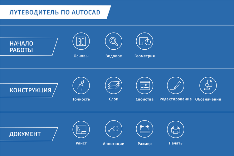 Если вы еще не работали с AutoCAD или AutoCAD LT, это руководство познакомит вас с основными командами для создания 2D-чертежей. Кроме того, оно поможет освежить знания, если вы только что завершили начальное обучение или изредка работаете в AutoCAD.