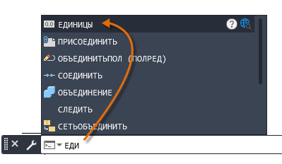 Обратите внимание, что при вводе имени команды оно будет дописано автоматически. Если доступно несколько вариантов, например, как в примере ниже, можно сделать выбор с помощью мыши или клавиш со стрелками и последующего нажатия клавиши ENTER или ПРОБЕЛ.