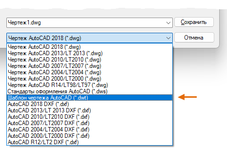 Любой чертеж можно сохранить (файл DWG) в качестве шаблона чертежа (файл DWT). Чтобы создать файл шаблона чертежа на основе существующего, откройте файл существующего шаблона чертежа, измените его, а затем сохраните под другим именем.