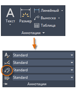 Можно создать собственные стили мультивыносок с помощью раскрывающегося списка в расширенной панели "Аннотации" или с помощью окна командной строки и команды МВЫНОСКАСТИЛЬ.