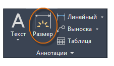 С помощью команды РАЗМЕР можно создавать горизонтальные, вертикальные, параллельные и радиальные размеры. Тип размера зависит от выбранного объекта и направления перетаскивания размерной линии.
