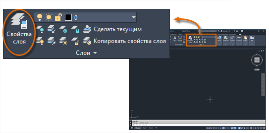 Для просмотра организации чертежа используется команда СЛОЙ, чтобы открыть "Диспетчер свойств слоев". Можно ввести СЛОЙ или СЛ в окне команд, либо щелкнуть инструмент "Свойства слоя" на ленте.