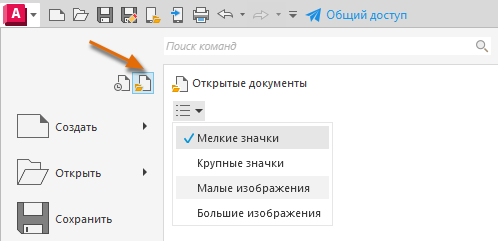 , а затем нажмите значок «Открытые документы».