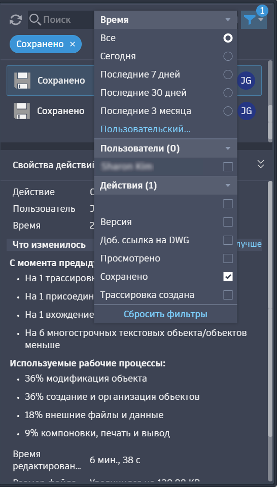 Для просмотра операций, выполненных в файлах чертежей другими участниками проекта, настройте общее расположение аналитики действий.