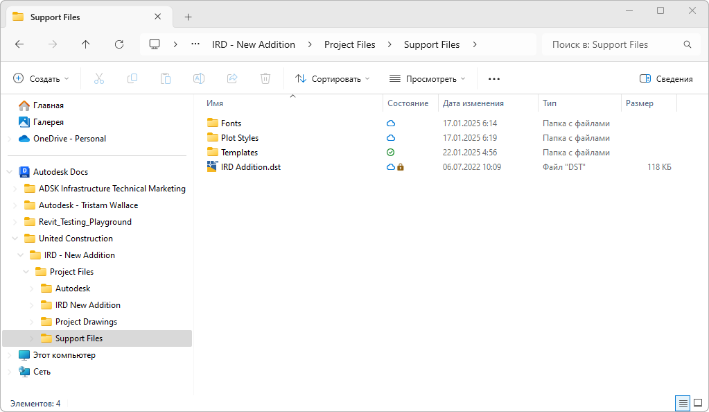 Вспомогательные файлы, добавленные в локальные папки, будут синхронизированы с Autodesk Docs с помощью Desktop Connector.