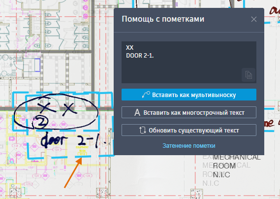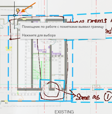 Функция «Помощь с пометками» доступна только в режиме «Трассировка (сзади)». Используйте его, чтобы изменять или добавлять геометрию чертежа на основе импортированных пометок.
