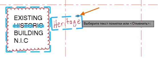 Прим.: Если текст выбрать не удается, нажмите клавишу ESC для завершения текущей команды. Дважды щелкните внутри видового экрана и снова выберите границу пометки.