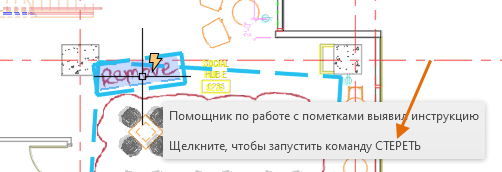 Щелкните текст пометки, чтобы запустить команду СТЕРЕТЬ.