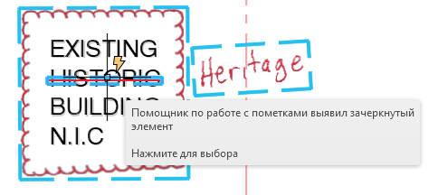 Функция «Помощь с пометками» может распознавать текстовые пометки, содержащие перечеркнутый текст. Для пометок с перечеркнутым текстом доступны различные варианты.