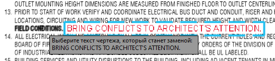 При появлении запроса на выбор текста, который требуется заменить, выберите текст FIELD CONDITIONS.