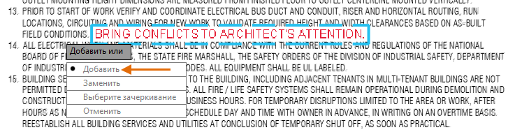 Для перечеркнутого текста существует два варианта: замена или удаление существующего текста. В этом примере существующий текст будет заменен текстом из пометки рядом с ним.