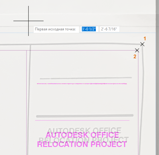Выберите команду «Выровнять» в меню. Для выравнивания необходимо указать две пары исходных и целевых точек. Исходные точки располагаются на пометке, а целевые — на чертеже.