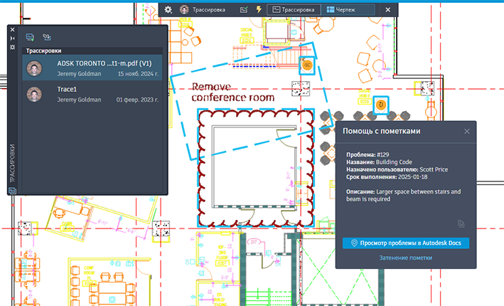 Проблемы, созданные и опубликованные в файле PDF с пометками в Autodesk Docs, теперь можно просматривать в AutoCAD.